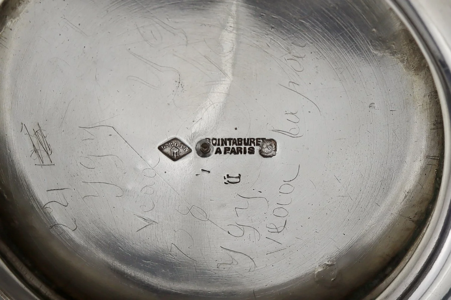 Renowned French silversmith Boin-Taburet was established in 1873 by antique dealer and designer George Boin and jeweller and silversmith Emile Taburet. Boin-Taburet worked in 1st quality high purity 950 silver and became known for their opulant, elaborate designs in high relief with detailed chasing and decorative elements including nymphs and foliage. Credited for the revival of Louis XV style silver-work in Paris, the firm was awarded a gold medal at the Paris 1889 Exposition Universelle.