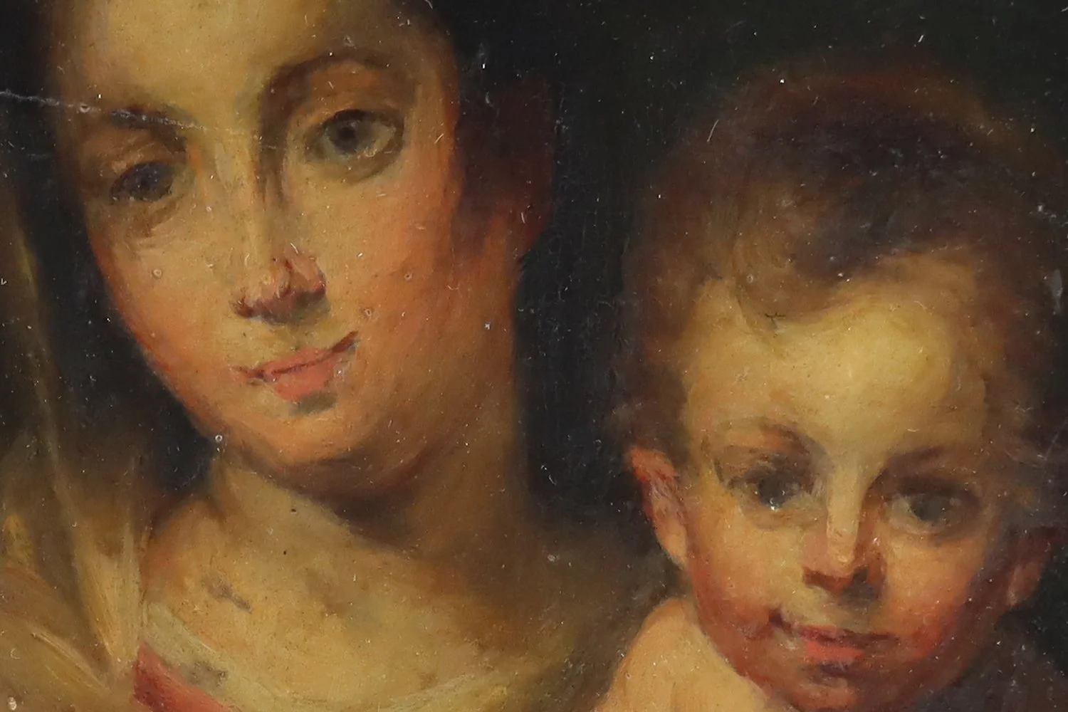 Oil on walnut panel depicting Madonna and Child, German school, 19th century, unframed, signed indisctinctly lower right