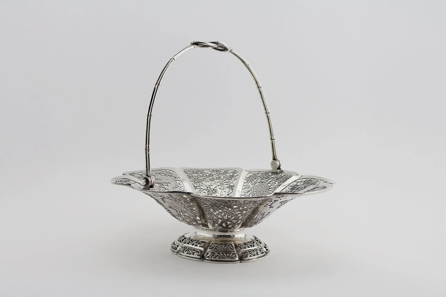 Chinese Export silver basket with swing handle, with openwork decoration of flowers and dragons, hallmarked with maker's mark for Hung Chong, Canton & Shanghai (1860-1930), late 19th century