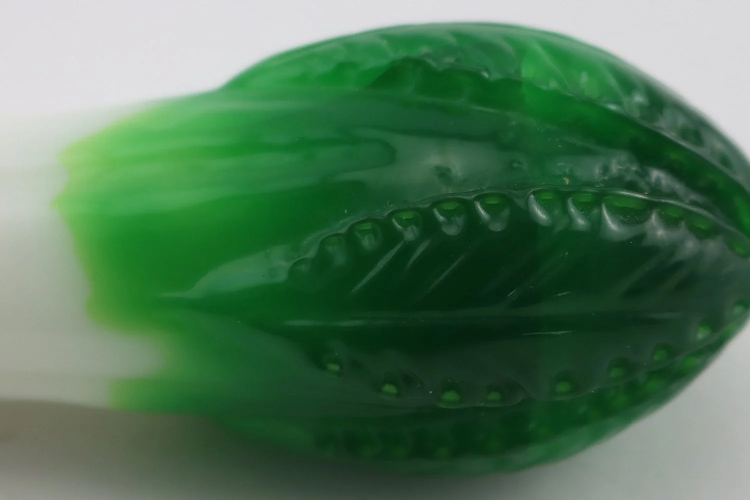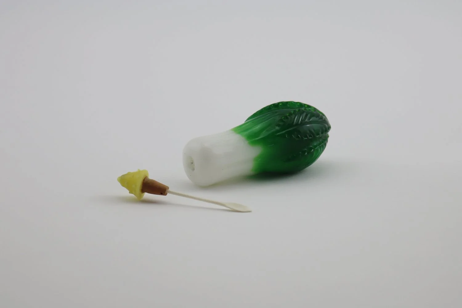 Chinese glass snuff depicting Bok Choy, with yellow stopper, 20th century.