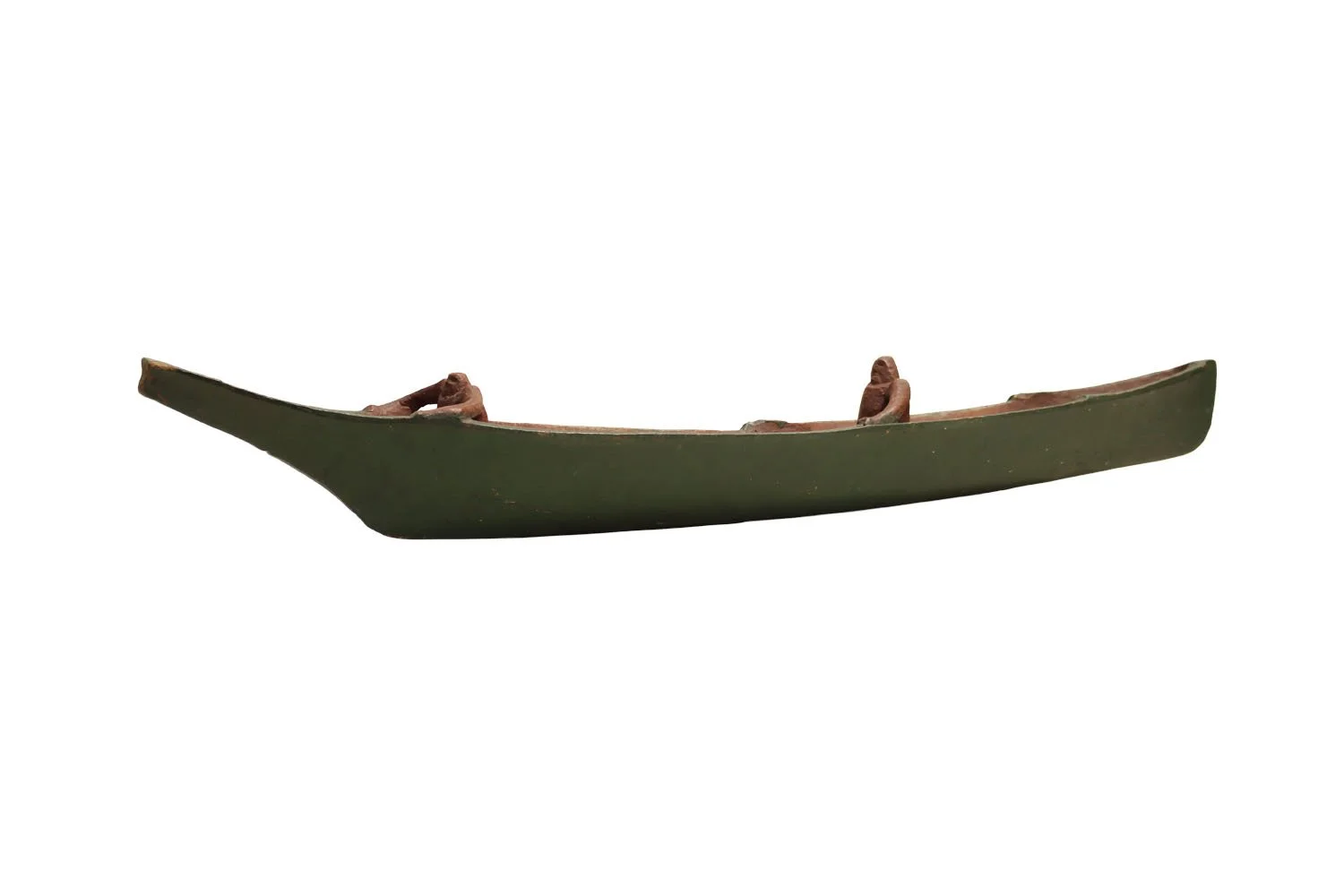 Nootka wooden carved whaling canoe with figures, painted in red and green, circa 1920