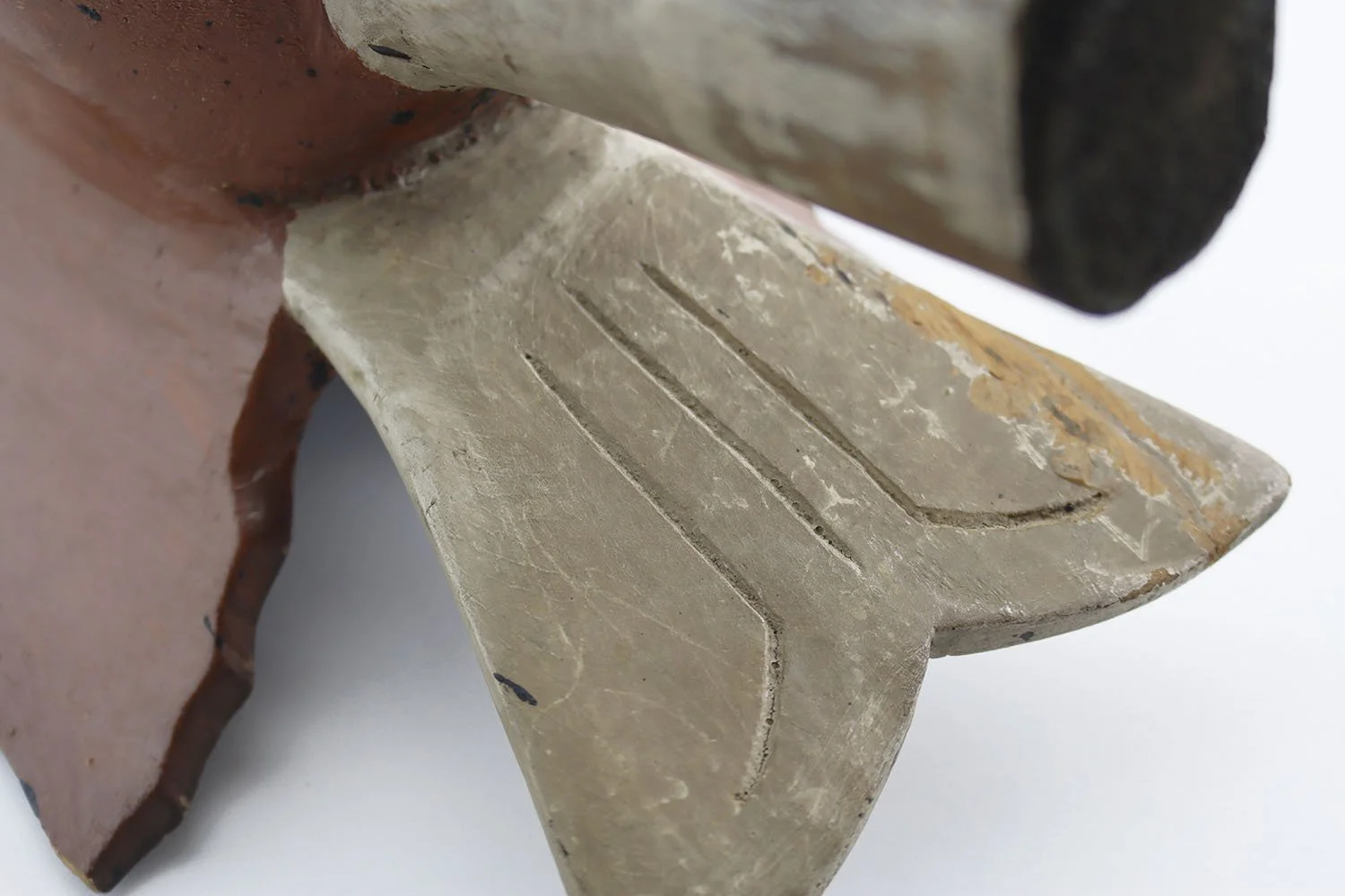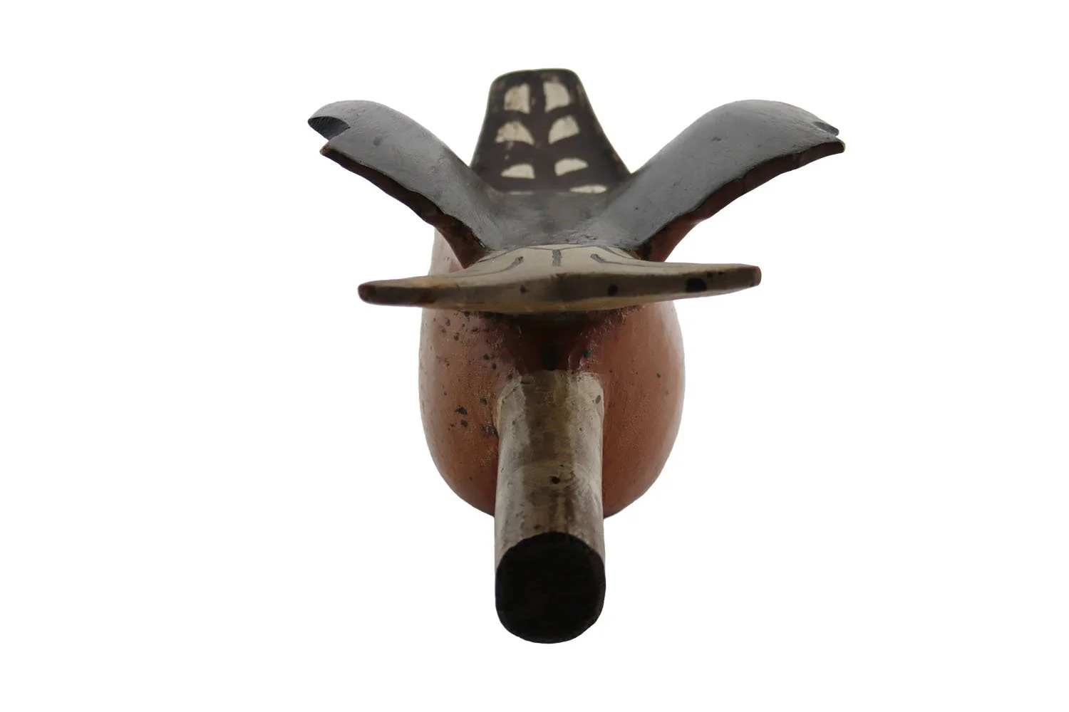 Northwest Coast carved and painted bird rattle with handle, carved in two pieces with stones inside, second quarter of the 20th century