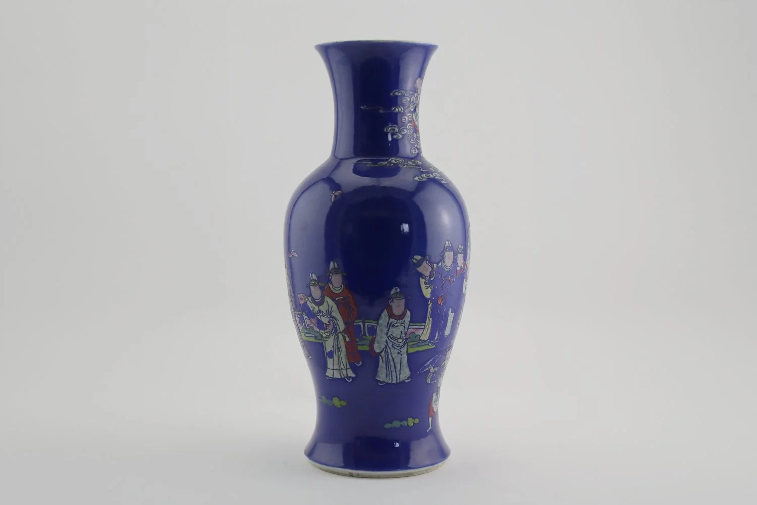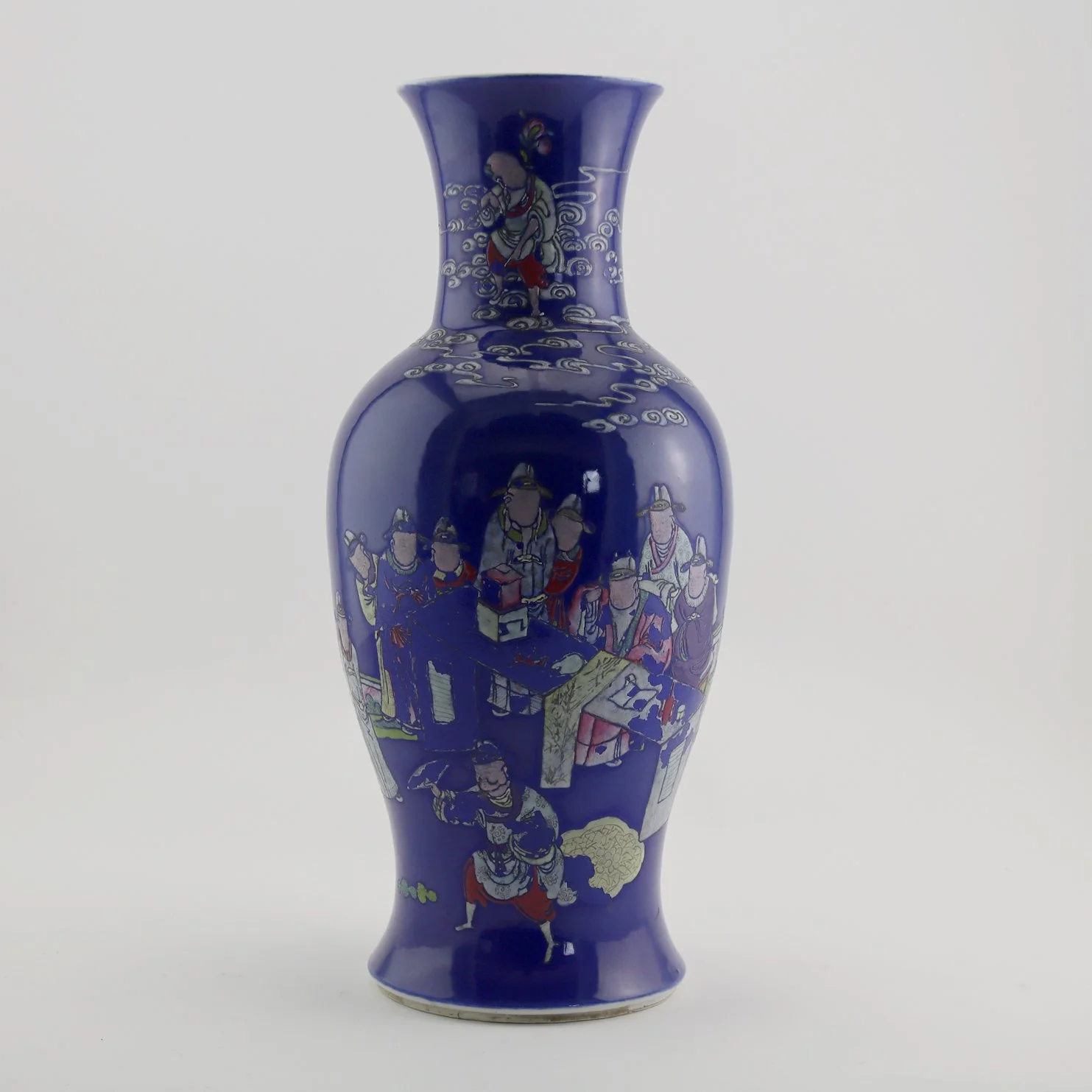Chinese Blue Ground Famille Rose 'Immortals' Vase, faces rubbed, 19th century