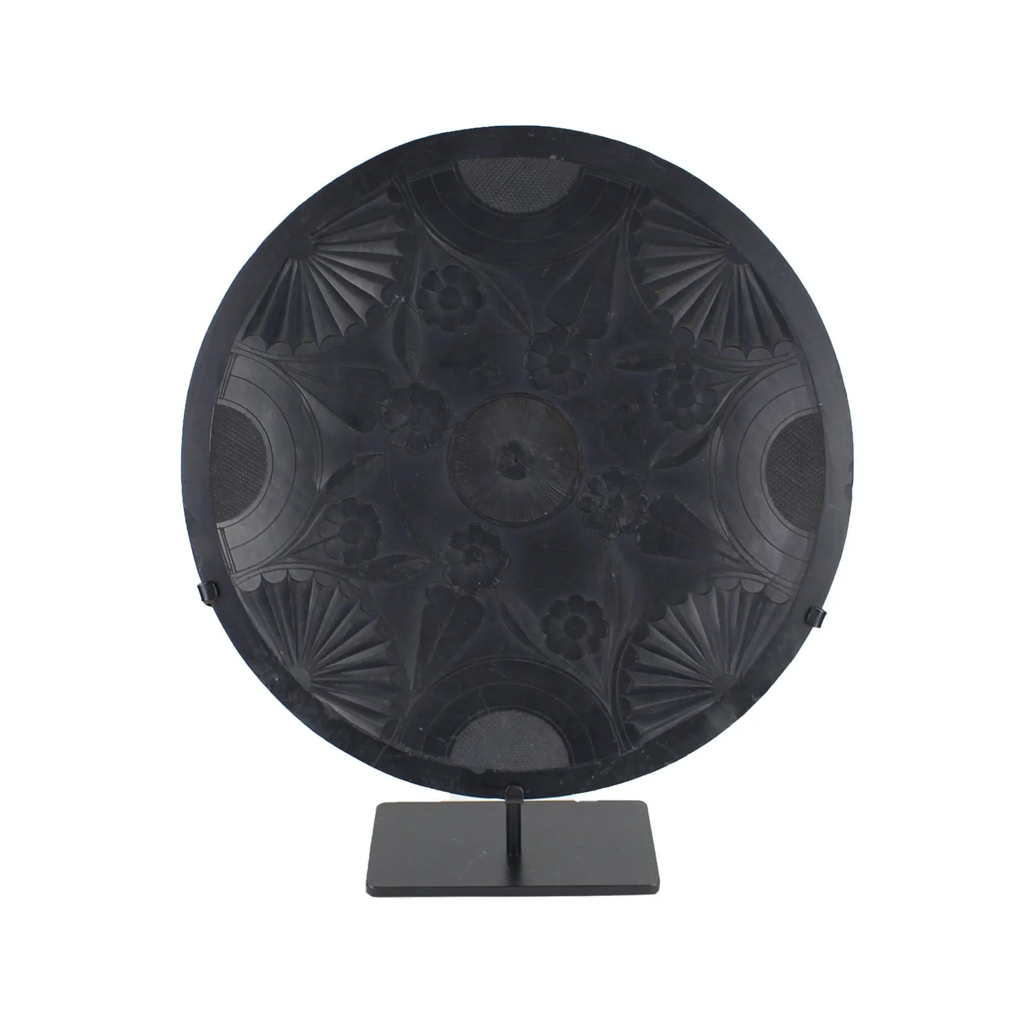 Hand carved argillite plate, featuring circular geometric elements interwoven with floral components, and inscribed ‘12” ½ HBC’. circa 1850.