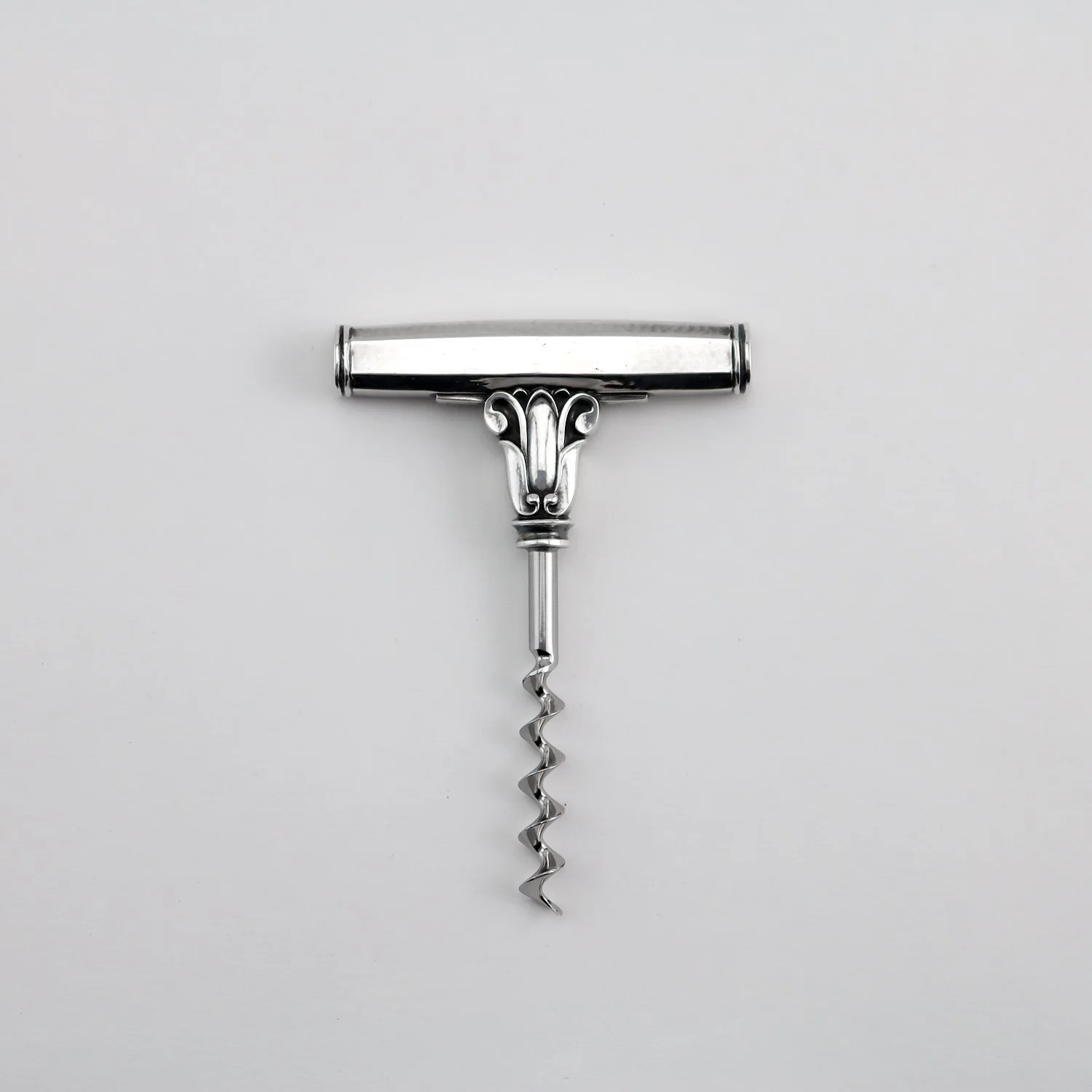 Georg Jensen (Danish, 1866-1935) sterling silver straight pull corkscrew in the acorn pattern design #62 by Johan Rohde from 1915, marked sterling Denmark Georg Jensen