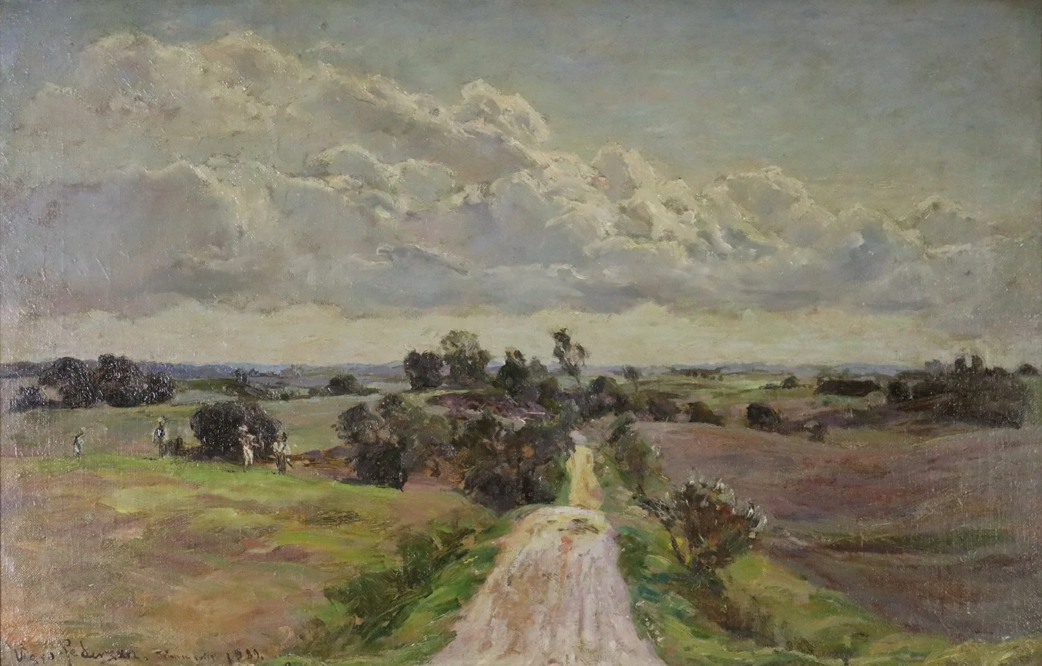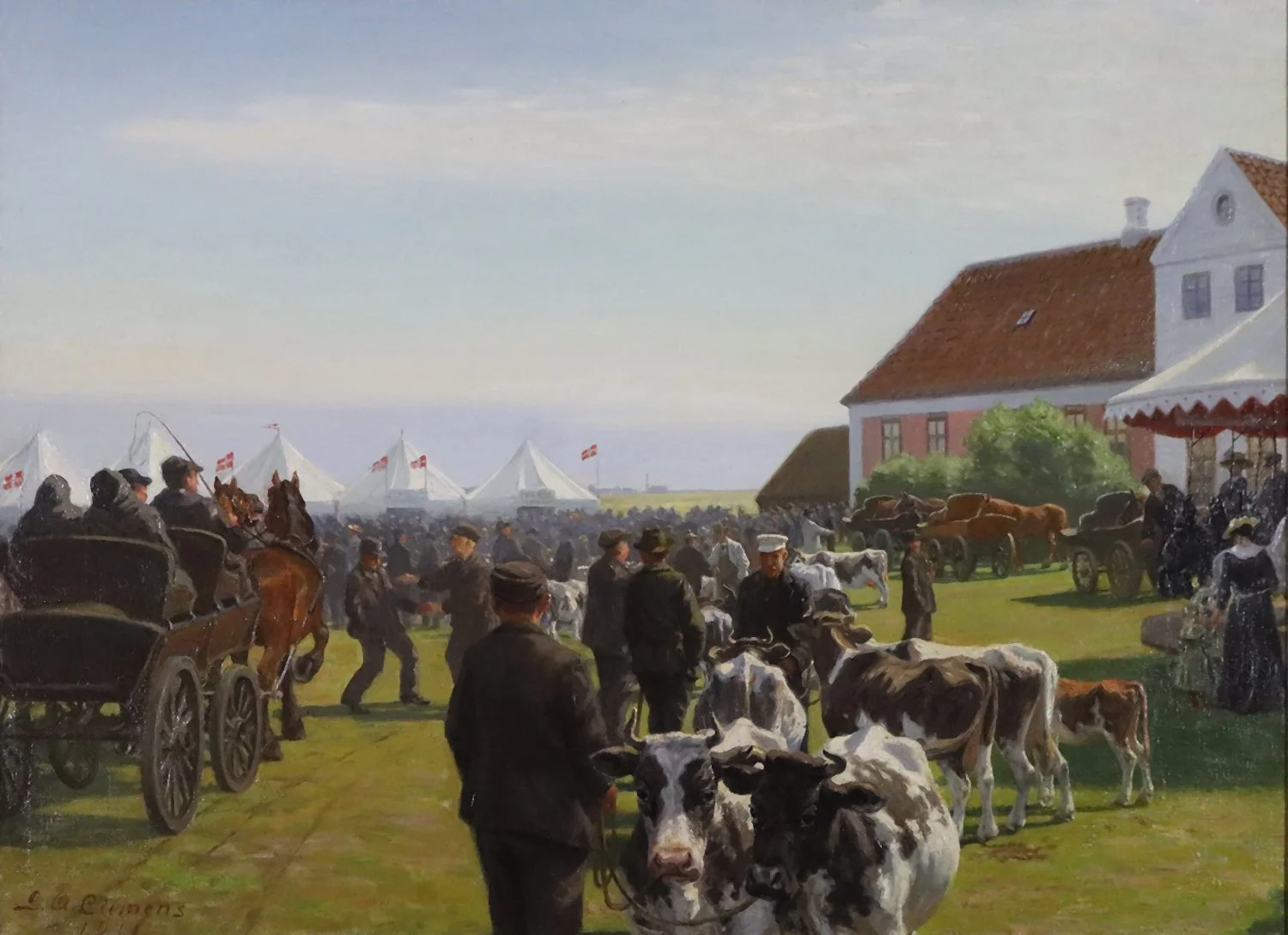 Well-known Danish artist Viggo Pedersen began his artistic career as a traditional naturalist, following the ‘plein air’ trend of Danish landscape painting in the 1880's. He attended the Royal Danish Academy from 1871 to 1878 and his work was decisively influenced by close contact with the Danish artists P.C. Skovgaard and Janus La Cour. It was under the influence of Skovgaard that Pedersen adopted the bright colours which he often used in his rendering of figures. During his travels throughout Europe he was influenced by the Barbizon School and its Romanticist depictions of rural life in nature. He exhibited widely including with the Danish Royal Academy and the Free Exhibition founded by the Danish Artist’s Association, and is represented in major museums throughout Scandinavia.