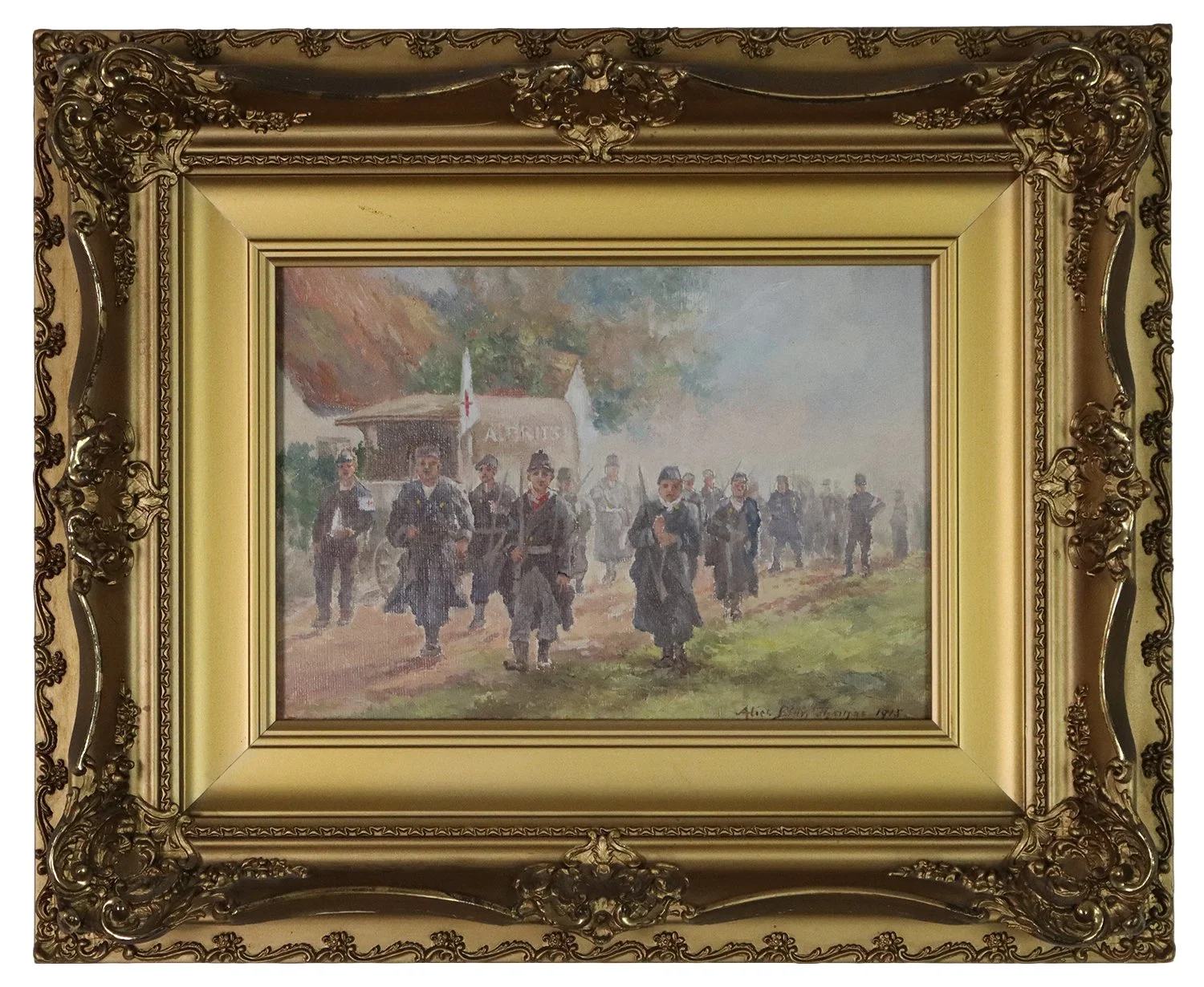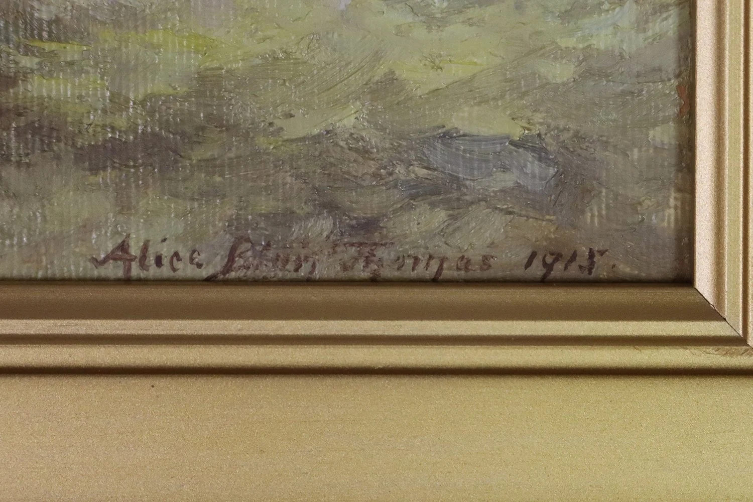 oil on canvas board, signed and dated lower right "Alice Blair Thomas, 1915"