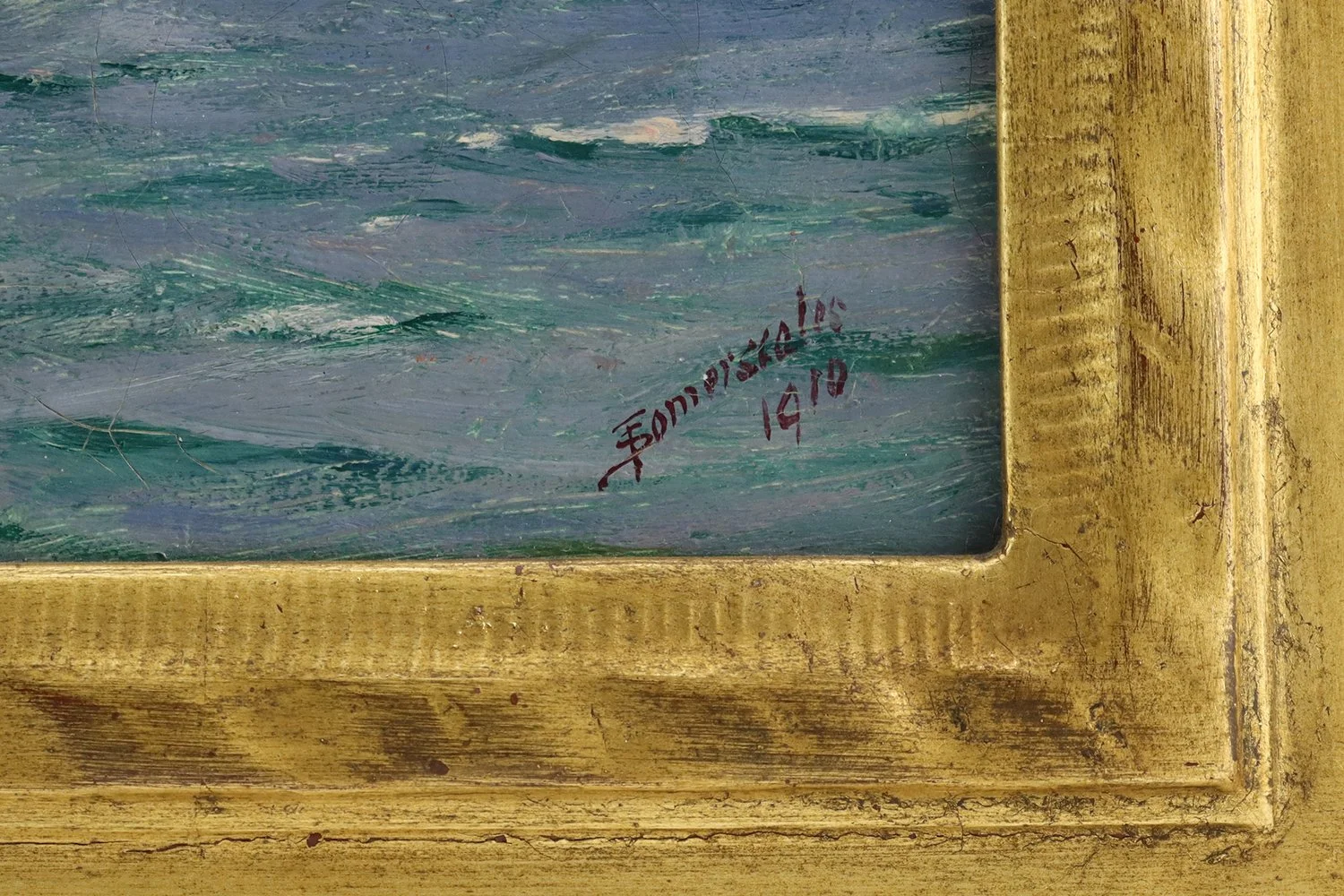 oil on canvas, signed and dated lower right "T. Somerscales 1910", needs restoration